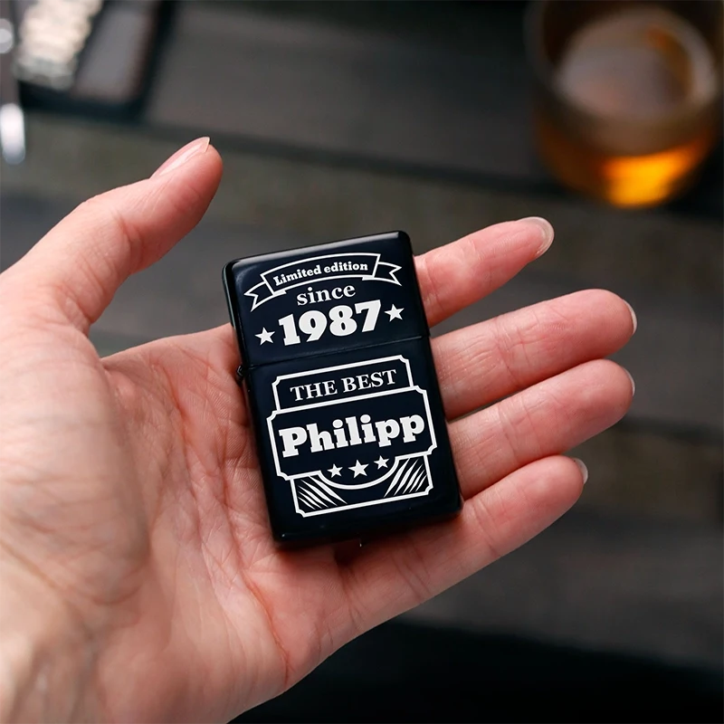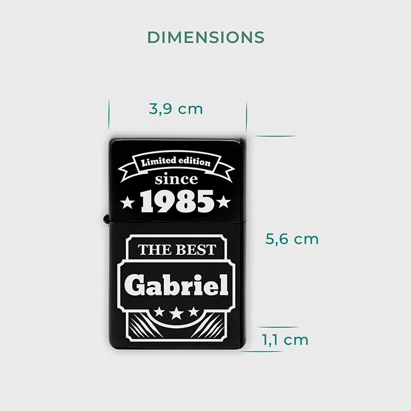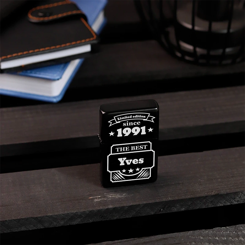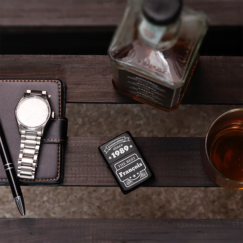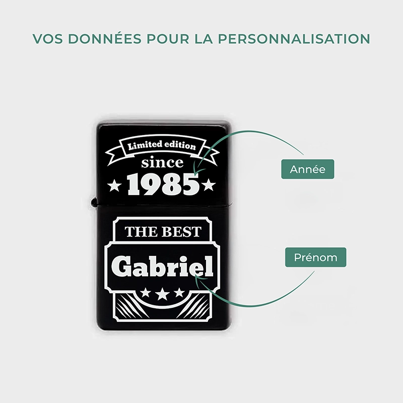 La possibilité de personnaliser le briquet avec un prénom et l'année de naissance rend ce cadeau vraiment unique. Cette personnalisation confère au briquet une touche personnelle et en fait un présent singulier et mémorable. Un cadeau parfait pour un père, un ami, un grand-père, un partenaire ou un mari, qui allie élégance et utilité.