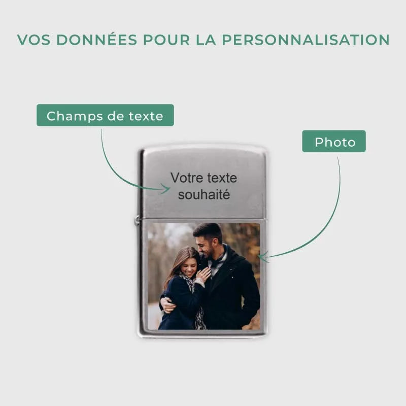 La possibilité de personnaliser le briquet avec une photo et un texte au choix rend ce cadeau vraiment unique. Cette personnalisation confère au briquet une touche personnelle et en fait un présent singulier et mémorable. Un cadeau parfait pour un père, un ami, un grand-père, un partenaire ou un mari, qui allie élégance et utilité.