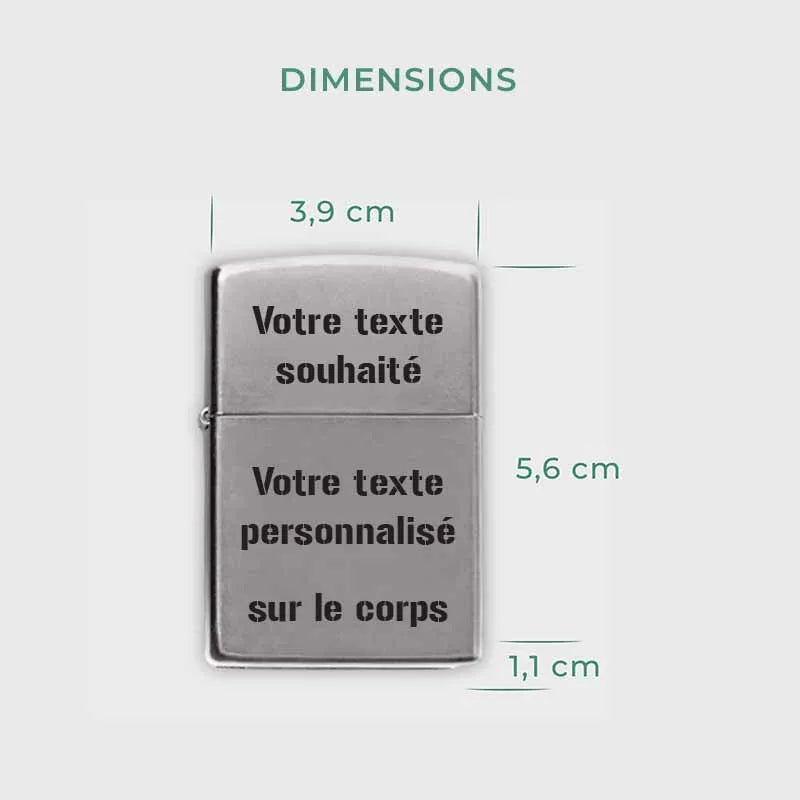 La possibilité de personnaliser le briquet avec un texte au choix rend ce cadeau vraiment unique. Cette personnalisation confère au briquet une touche personnelle et en fait un présent singulier et mémorable. Un cadeau parfait pour un père, un ami, un grand-père, un partenaire ou un mari, qui allie élégance et utilité.