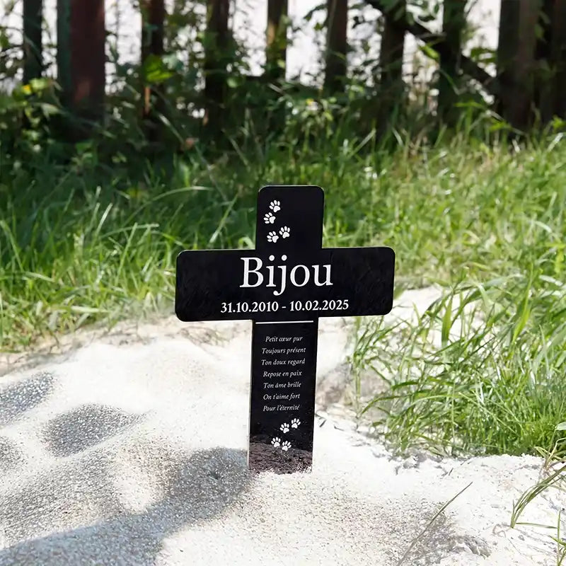 - Type : Croix funéraire personnalisée avec nom pour animaux