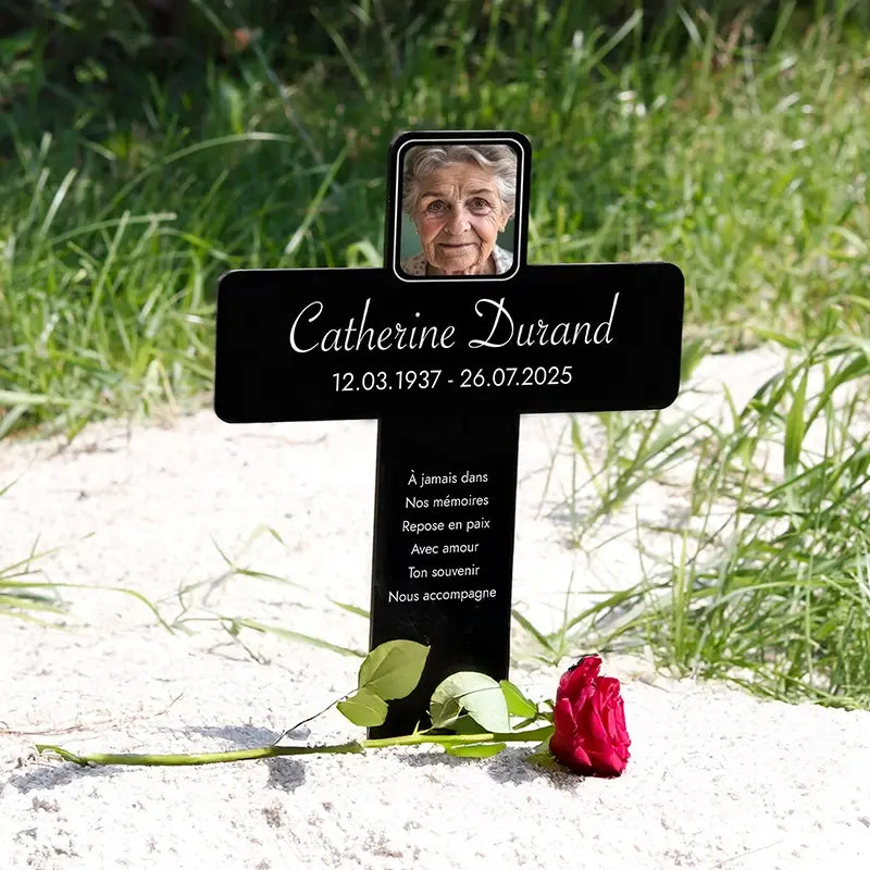 - Type : Croix funéraire personnalisée avec photo