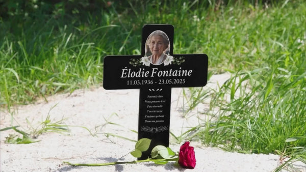 Notre croix funéraire personnalisée avec nom et photo est bien plus qu’une simple décoration de tombe – c’est un souvenir chargé d’émotion, qui capture les moments et les sentiments partagés avec la personne aimée. Fabriquée en acrylique de haute qualité, cette croix résistante aux intempéries est imprimée selon vos souhaits : nom, photo, dates de vie et message personnel. Cette personnalisation rend chaque croix unique et transforme la douleur de la perte en un hommage empreint de tendresse et de respect.