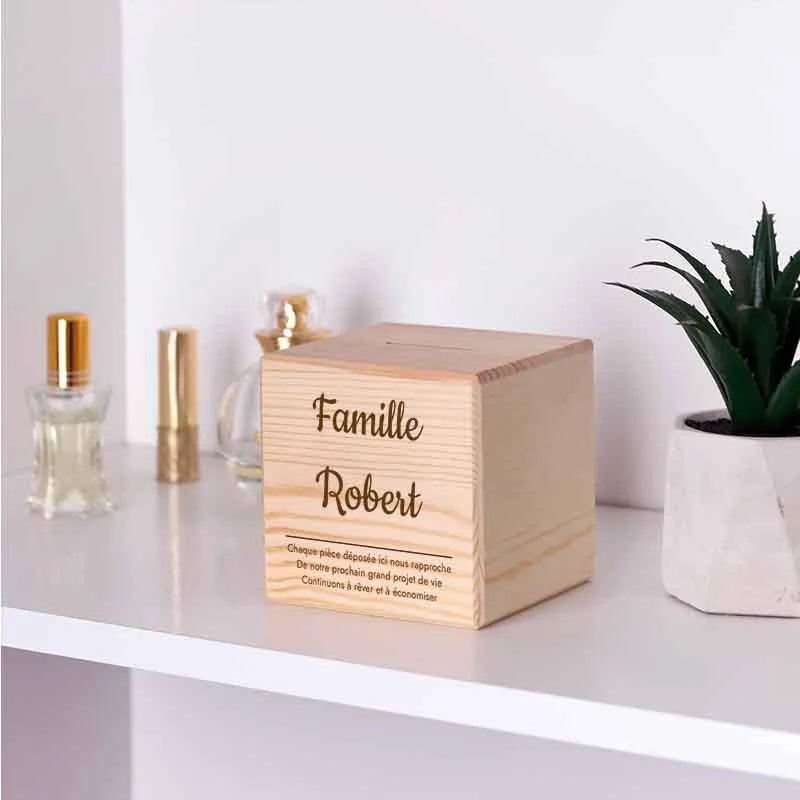 La tirelire en bois peut être un élément décoratif élégant qui s'intègre harmonieusement dans n'importe quel intérieur. Grâce à son design en bois naturel et à la possibilité de la personnaliser, elle devient un accessoire unique. Ce coffret à économies pour votre cagnotte pour rêves est à la fois fonctionnel et esthétique.