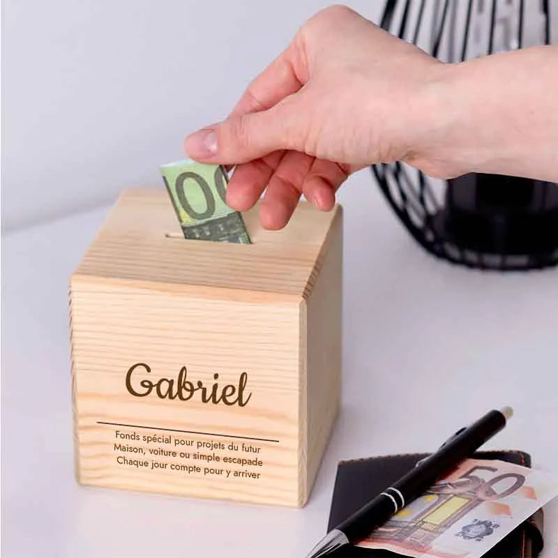 La tirelire personnalisée est un cadeau réfléchi et pratique pour toute occasion. Que ce soit comme outil motivant pour l'épargne ou simplement comme décoration élégante, le coffret à économies est un cadeau parfait pour les amis, la famille ou les collègues. Obtenez dès aujourd'hui votre tirelire avec impression.
